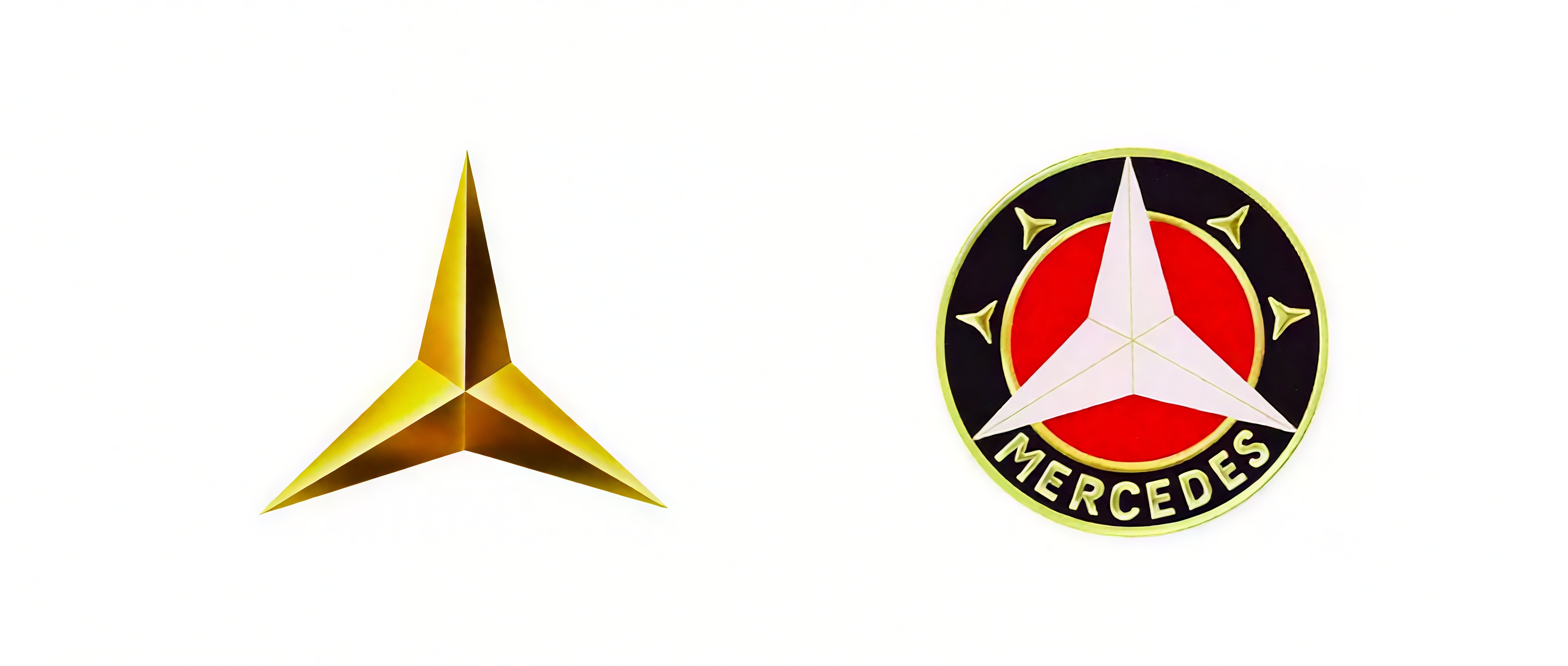 戴姆勒公司申请登记了“三叉星”作为轿车的标志,象征着陆上、水上和空中的机械化和合体。1916年在它的四周加上了一个圆圈,在圆的上方镶嵌了4个小星,下面有梅赛德斯“Mercedes”字样。